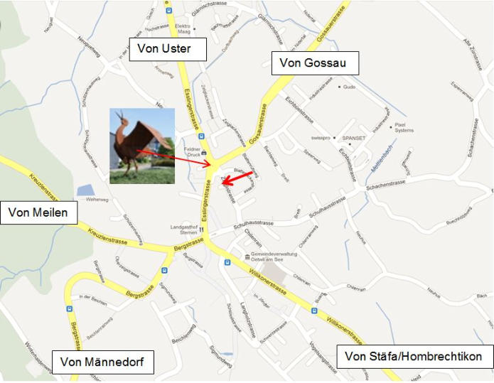 Von Zürich über die A52 bis Ausfahrt 7 Oetwil am See. Im 1. Kreisel (Storch) die vierte Ausfahrt nehmen. Gleich rechts vor dem Bierstübli hat es Parkplätze oder ums Haus herum.Von Uster via Mönchaltorf, Esslingen nach Oetwil am See. Im 1. Kreisel (Storch) die dritte Ausfahrt nehmen. Gleich rechts hat es Parkplätze oder ums Haus herum.Von Rapperswil-Jona dem See entlang bis Feldbach. Dort Richtung Hombrechtikon, Oetwil am See. In Oetwil im ersten Kreisel Richtung Zentrum bis zum "Storchenkreisel". Dort die 1. Ausfahrt nehmen. Gleich rechts hat es Parkplätze oder ums Haus herum.Octopus-Bräu GmbH - Google Maps