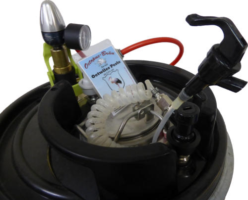 Damit bleibt ein Keg mit 19 Litern Bier 48 Stunden kalt. Einfacher Spiralzapfhahn und