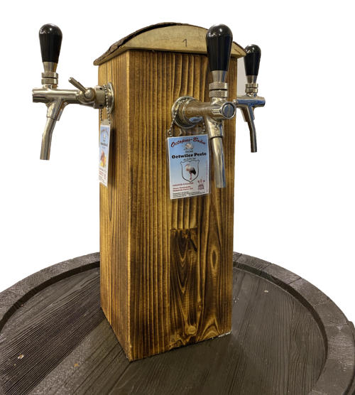 Im Fass hat es Platz für vier Biere. Die Hahnen werden individuell beschriftet. Dieses